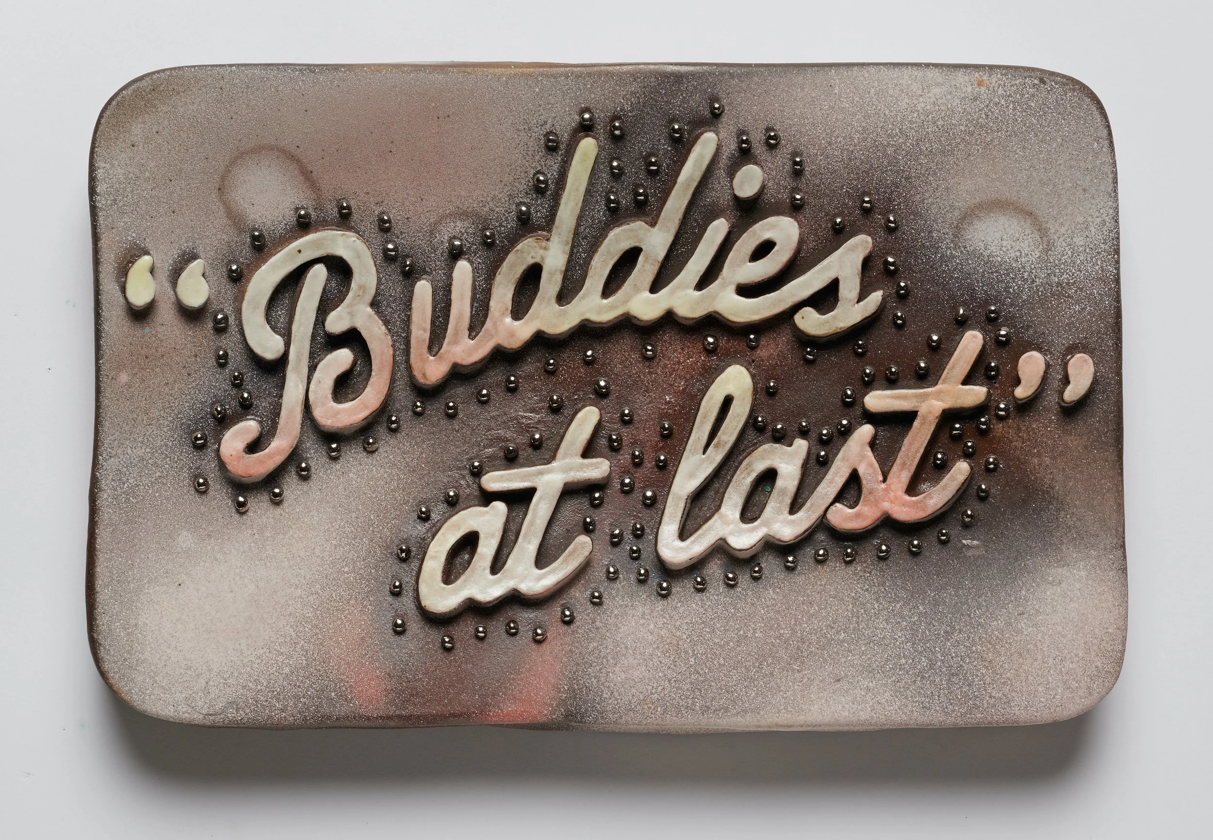 “Buddies at Last,” ceramic, 2022. Photo credit: Max Wagner